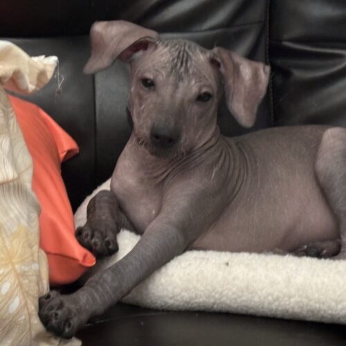 Ziggy loves to jump around and be next to his person. He is very affectionate. We expect him to be between 30 and 40 pounds when full grown.