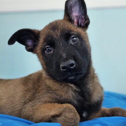 Archer joined us as an orphan, along with 2 of his siblings. They have been bottle fed and raised in a loving foster home and these puppies are sweet, smart and ready to find homes committed to training and raising a high energy dog. The pups already know to sit and wait for their food to be put down! We are estimating adult size to be around 50 lbs.
