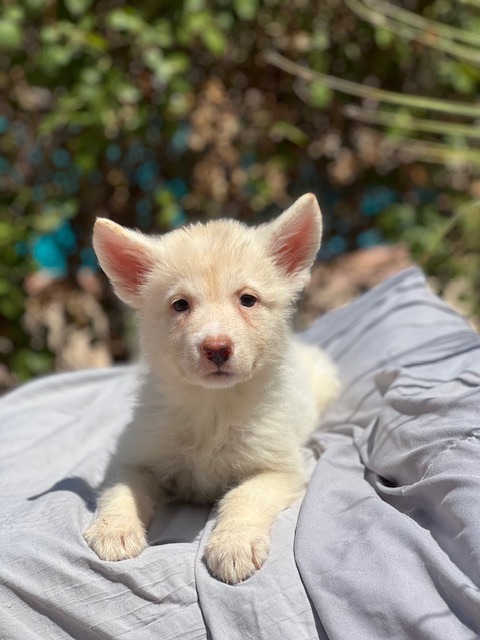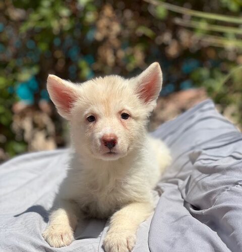 Ashy was born to a German Shepherd mom and we are guessing a Husky dad, based on her good looks! She loves to be cuddled and is learning how fun toys are. We are estimating her adult size to be 50-60 lbs. She will need a home with the time and patience to train a young pup.