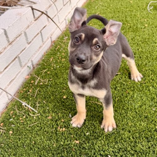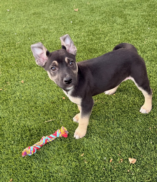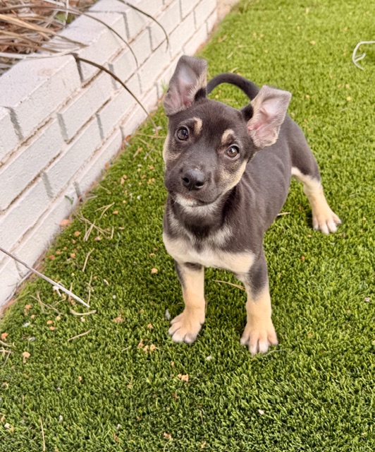 Astro is a fun pup who loves everyone that he meets! This handsome boy loves to play, both with other dogs and with his people. He is curious, smart and eager to learn. We were told he's a Dutch Shepherd mix, it must be with someone smaller because he is a small 7 lb pup at 8 weeks old. He will need a home with the time and patience to train him on his good boy manners. We are expecting him to be in the 40-50 lb range when fully grown.