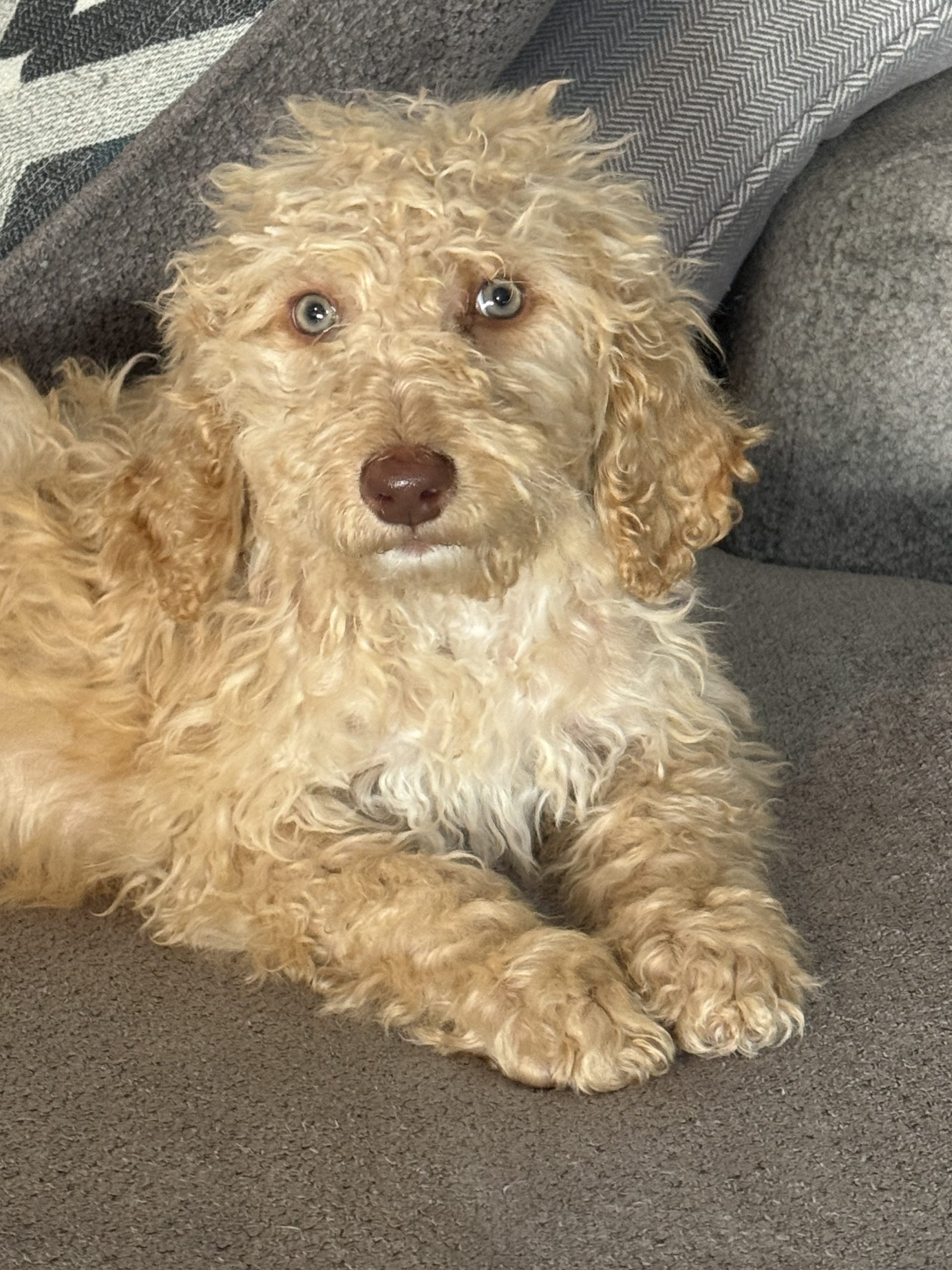 Barrel is a 3-month-old Doodle who loves running in the yard, playing with toys, and wrestling with his siblings. He’s looking for a family with the time, love, and patience to spoil him like he deserves.