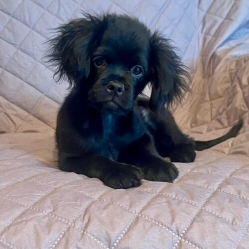 Beau joined us at just a couple of days old, the result of an oops litter. Mom was spayed and returned to her person and now little Beau is ready to find his forever home. He looks just like his mom, with a cute little underbite and silky black hair. We are guessing him to be a spaniel mix and grow to 15-20 lbs. Beau is a friendly, cuddly boy who will provide years of love to his forever home.