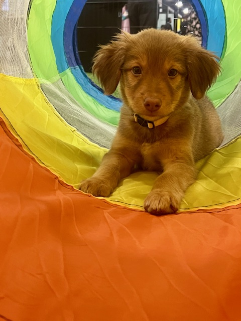 Bliss came to us as part of a litter of 7 orphaned puppies when they were only 3 weeks old. She has been raised in a loving foster home and is a social, sweet girl who loves everyone. We are not sure which breeds make up this litter, they are likely a mix of mixes, unique and adorable! Bliss will thrive in a home with the time and patience to train her to become a well mannered family member. We are estimating her birthdate as September 5th and her adult size to be in the 40-50 lb range.