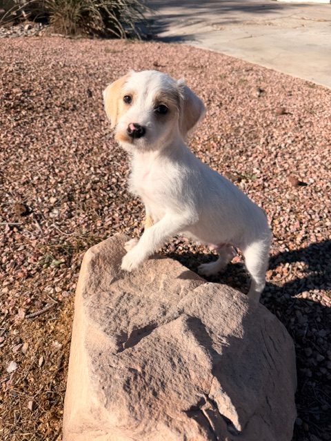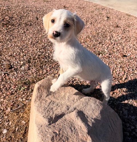 Bobby was living in a backyard before coming to us so he is playing catch up on receiving lots of love, toys and treats in his foster home! This sweet boy is the biggest of his litter and must get his legs from his mystery daddy because mom appears to be a short doxie mix. Bobby is friendly, loves to play but is happy to settle in for snuggles. We believe he was born around October 20th and we are estimating his adult size to be around 25 lbs.