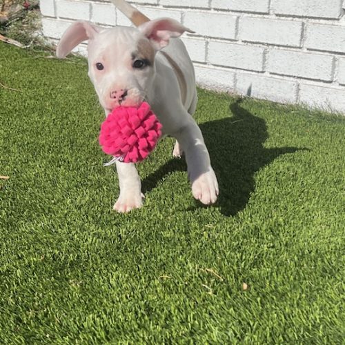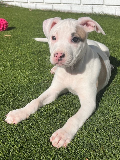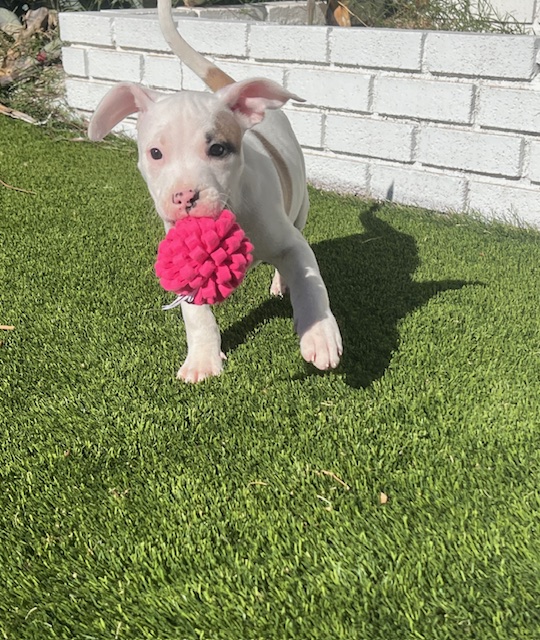 Cheese is one of Cookie's puppies who came to us from our local shelter before their eyes were even open. She has grown up in a loving foster home and is a social girl who loves to be in your lap. Cheese has been socialized with lots of people, other dogs and cats, loving everyone that she meets. She was born at the beginning of October and is estimated to be in the 50-60 lb range when fully grown. She is all puppy and will need a home with the time to train her on her good girl manners.