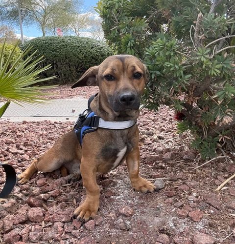 Chewy came to us from someone who had too many dogs. He has been loved and once he gets over his initial shyness, he loves to cuddle! Chewy does well with other dogs and has a calmer energy than most pups his age. He will need a patient home that will help him come out of his shell and let his personality develop. Chewy was born on May 4th and weighs 18 lbs.