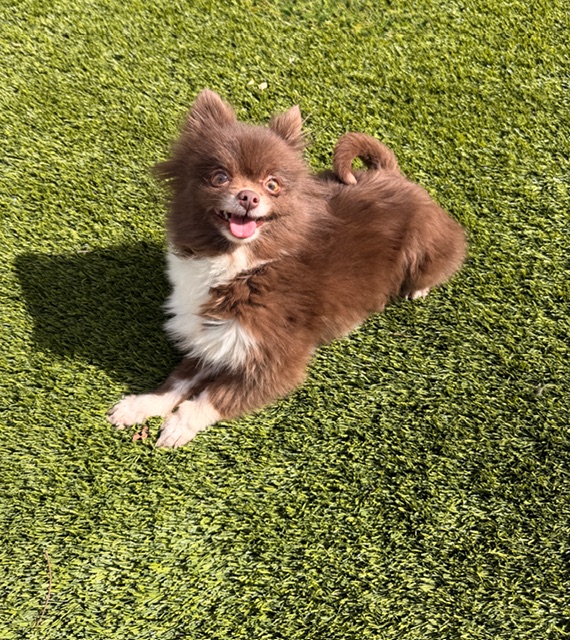 Meet Coco Puff, a delightful 3-year-old, 5-pound Pomeranian (with maybe a hint of Chihuahua) who’s all love wrapped in fluff! This cheerful little girl adores attention and makes friends wherever she goes. She’s a cuddle expert who’s happiest snuggled in your lap, but she also loves to romp around the yard when it’s playtime. Coco isn’t much of a barker—she prefers to share her joy through tail wags and kisses. This petite princess is ready to find a forever home where she’ll be adored and spoiled just as she deserves.