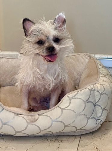 Cookie is a friendly girl who gets along well with other dogs but would also be fine as your one and only. This cutie adapts to new situations quickly, she's happy wherever she goes! We were told Cookie is a Yorkie but there is something else going on in there, Google guessed Chinese Crested but no one knows for certain. Cookie is 5 years old and weighs 12 lbs. She is an easy going girl and will bring years of happiness to her lucky new home.
