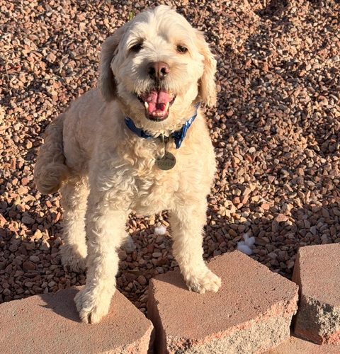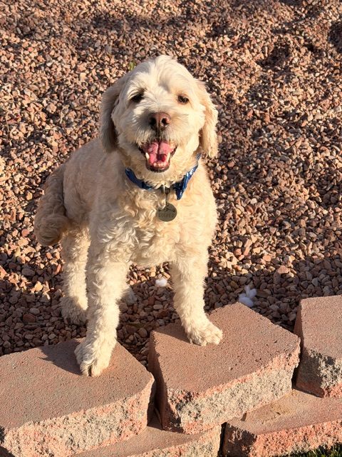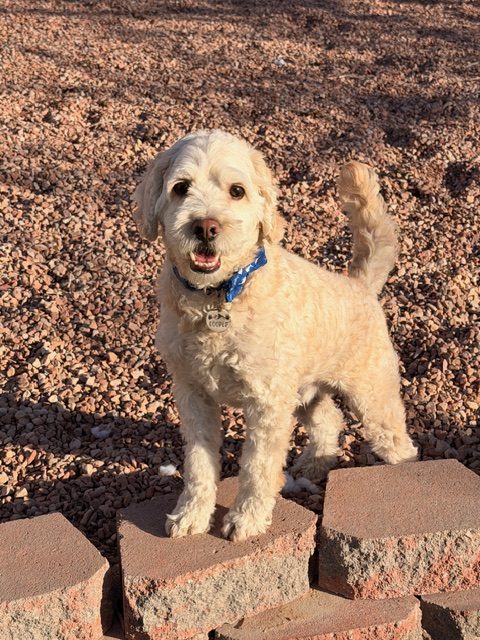 Cooper is more than a cute face, this boy also is a sweet cuddler. He makes new dog friends easily and would be fine joining a house with another dog but he would also be content as an only dog as long as his person has lots of time to spend with him. Cooper knows his basic obedience but we are recommending older kids only as he forgets his manners around food and feels no guilt for snatching a snack out of anyone's hand! Cooper is 4 years old and 24 lbs. He will require regular grooming as well.