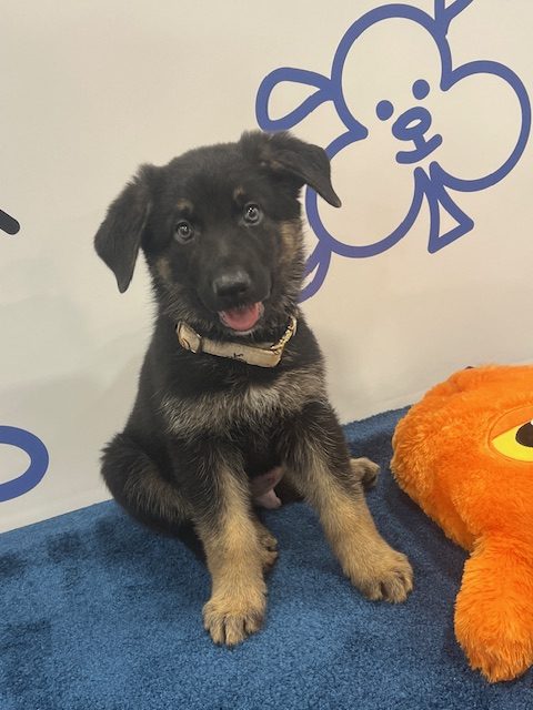 Cosmo joined us, along with his 4 siblings, when they were just two weeks old. He has been bottle fed and raised in a loving foster home, giving him a good start on being a well-socialized boy. Cosmo weighs 8 lbs at 8 weeks old he is expected to be in the 60-70 lb range when fully grown.