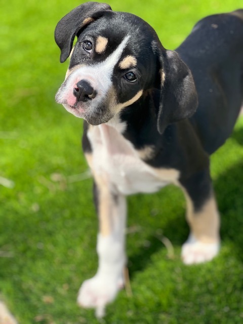 Dill was born on New Year's Day and he has been enjoying life in one of our loving foster homes for the past few weeks. He is a social, friendly boy who is having fun playing with toys and his siblings. Dill is a mix of several breeds with an estimated adult size of 50 lbs. He is looking for a home with the time and patience to train him to be a well-mannered family member.