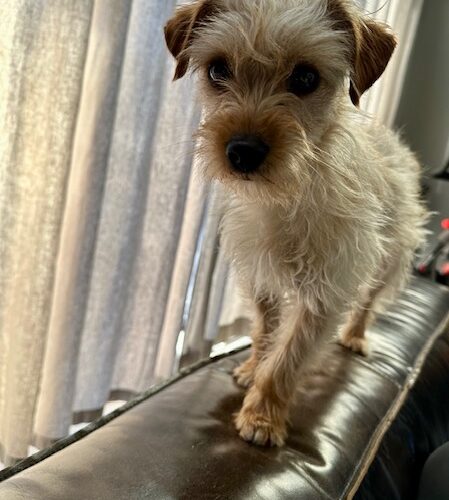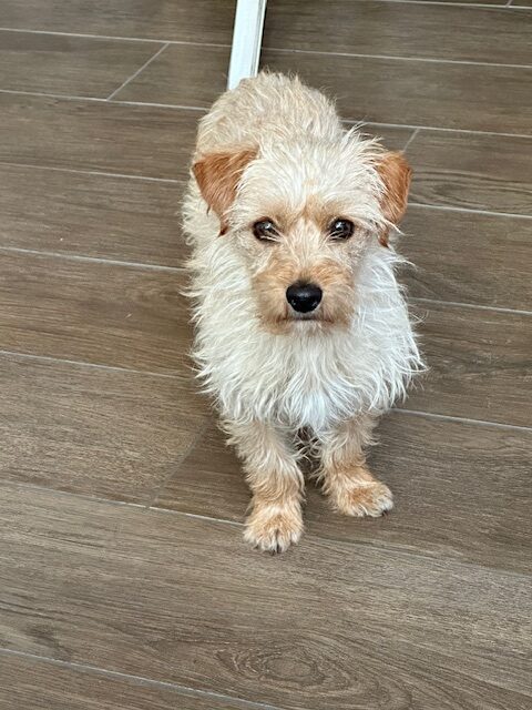 Enzo is one of 9 dogs that joined us from the same home. He had been living outside his entire life and as a result, is under-socialized. Everything is new to him and he is learning about the pampered pet life while in his foster home. Enzo wants love but gets spooked easily; fortunately he is not aggressive at all. He would do best in a home with another dog that he could follow to learn how to react to everyday situations. Enzo was born in September and weighs 8 lbs.