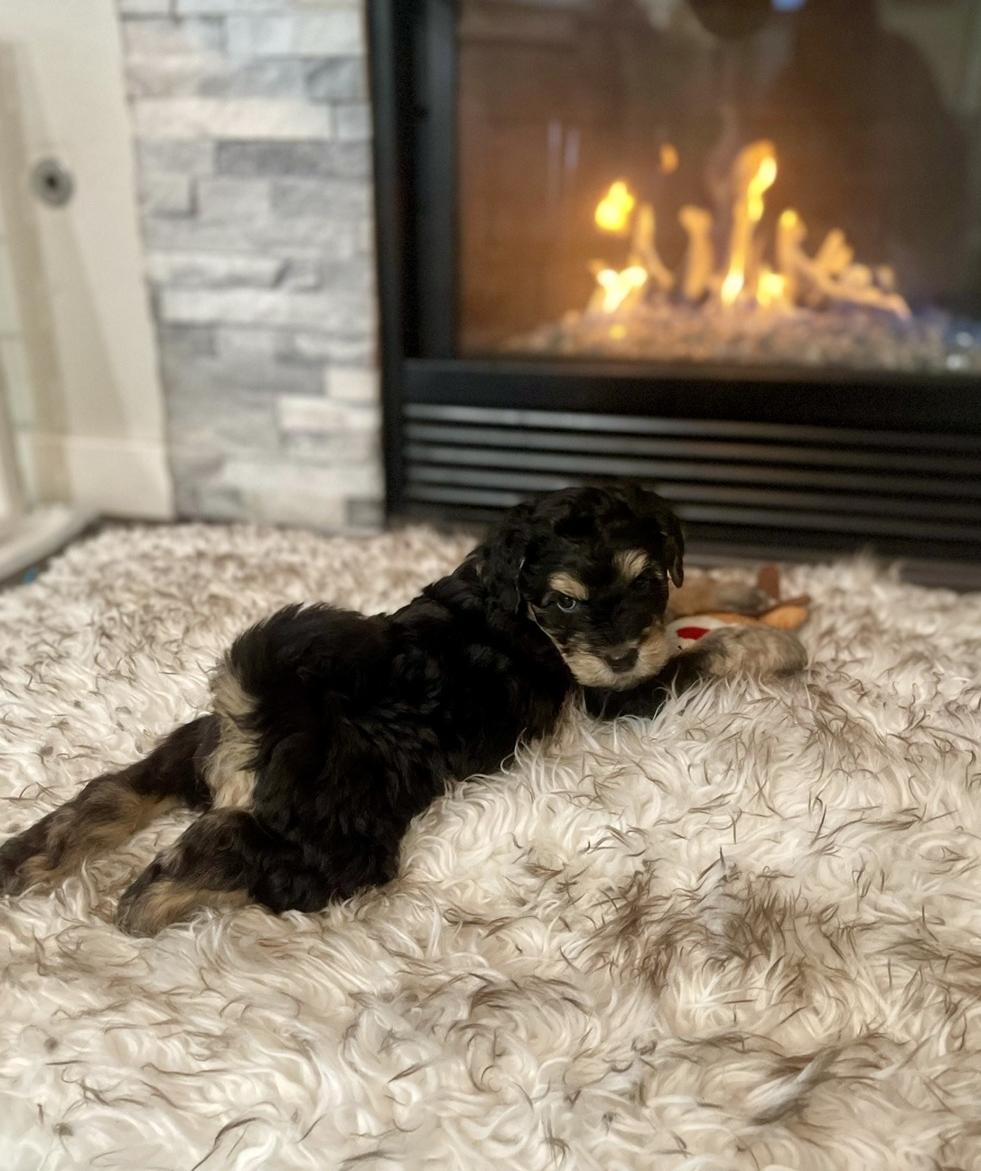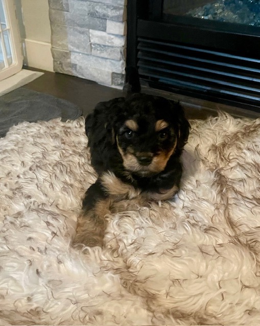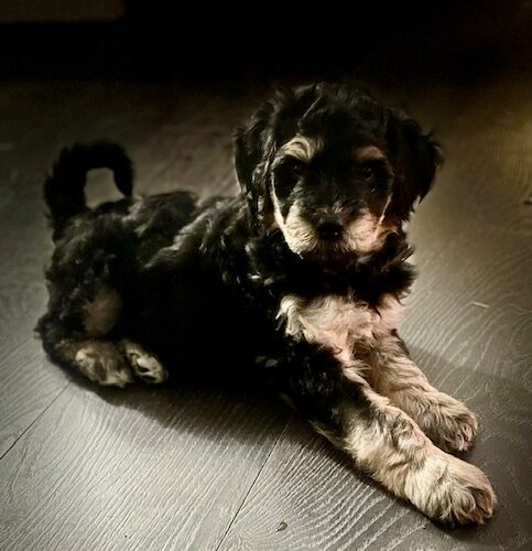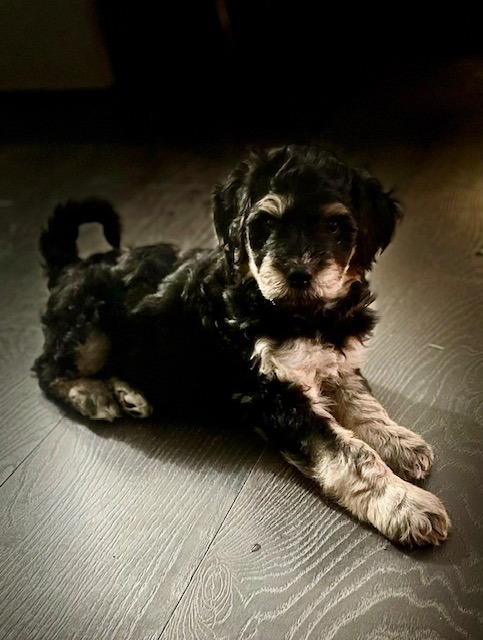 George came to us when he was only 11 days old and his mom developed mastitis and was unable to continue feeding him. He was bottle fed in one of our loving foster homes and has grown into a well-socialized puppy. His dad is a 50 lb standard Poodle while mom is a 25 lb terrier. He will require regular grooming appointments, as well as a home with the time and patience to train him on how to be a well-mannered family member.