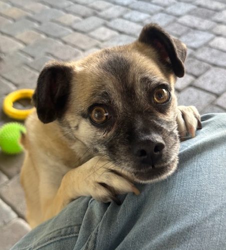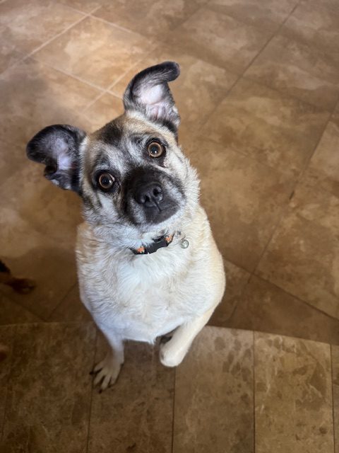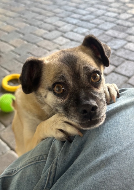 Goody is a 4 year old Pug mix who loves people, including kids! She does well with the other small dogs in her foster home but she'd also be fine as your one and only as she loves her people the most. Goody is perfectly potty trained, rarely barks and is an easy dog to share life with. She weighs approximately 15 lbs.