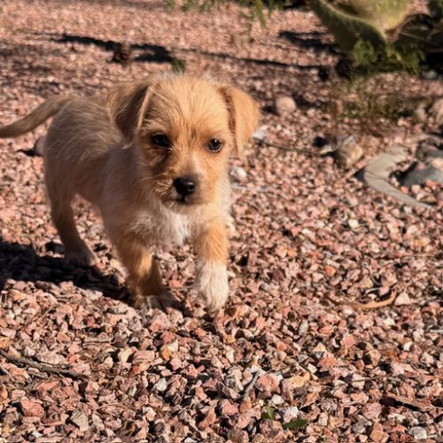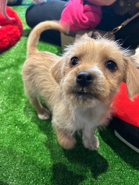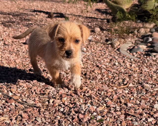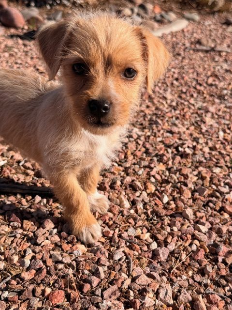 Gordon is one of a litter of 7 who was given to us after being born to a stray dog. The pups had been living outside but they quickly adjusted to life in a warm, loving foster home! Gordon is long like a doxie, scruffy like a terrier and full of puppy personality. He was born around October 20th and is estimated to be around 15-20 lbs when fully grown.