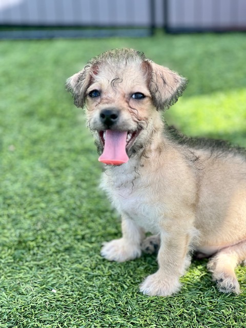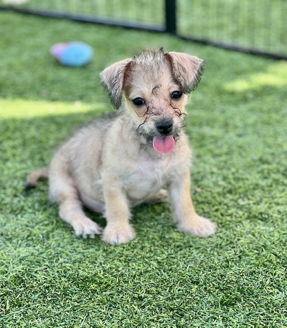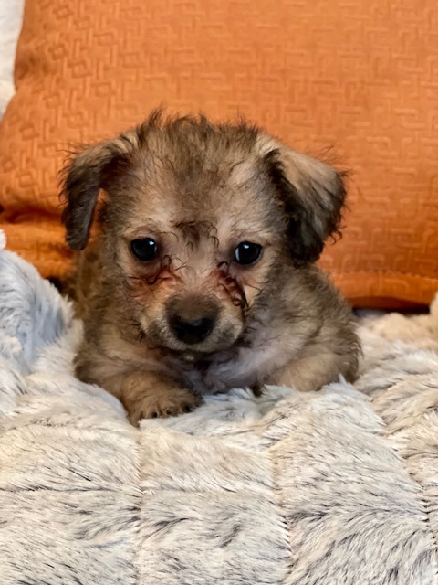 Hijinks was born into rescue on August 12th to a chi mix mommy and maltipoo daddy. He is a friendly, playful pup who loves toys, chasing his sisters and then, finally settling in for cuddles. Hijinks is expected to be around 10 lbs when fully grown.