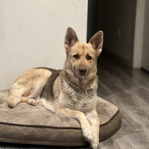 Joy is very lovable and sweet. Loves to be groomed but doesn’t like showers. Waits for commands to eat, crate trained… barks/cries when people ring doorbell but overall really sweet dog