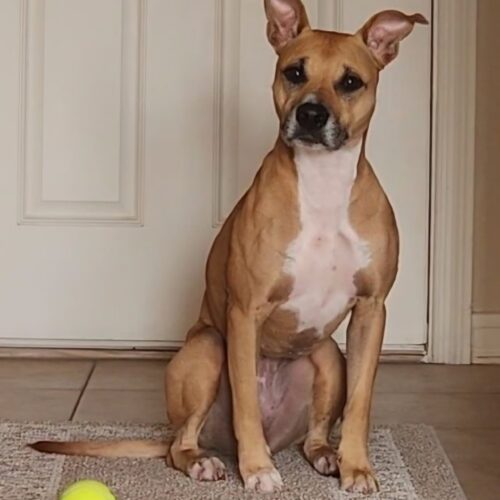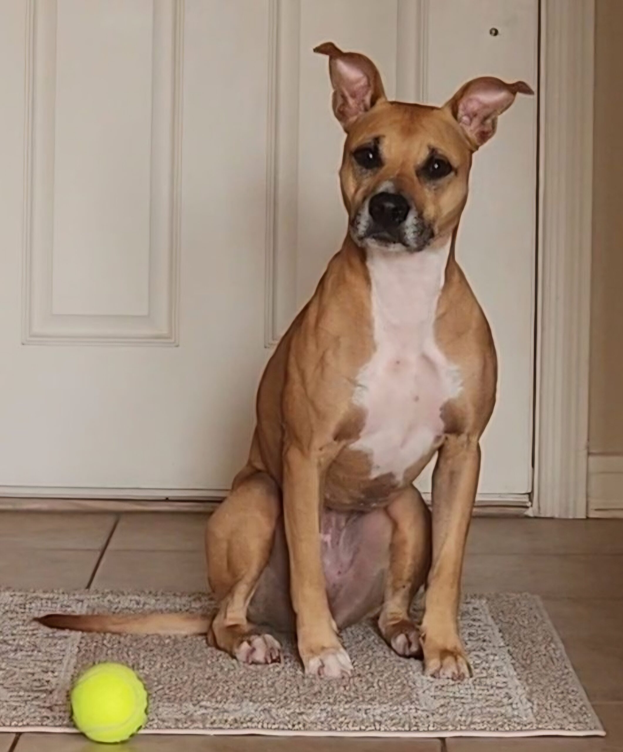 Took in as stray via Facebook group.  Allegedly found in North Vegas by the family that posted on FB/dropped of with me but for all I know, they are Lady's original family.  So, including my home, Lady has had either 2-3 (or potentially more, I suppose) homes.  Checks every single box required to be deemed a "good girl" except needs work on socialization with other dogs.  She has been seen/evaluated by Tiffany at Hound House, who could speak more as to her behaviors while other dogs are present.
