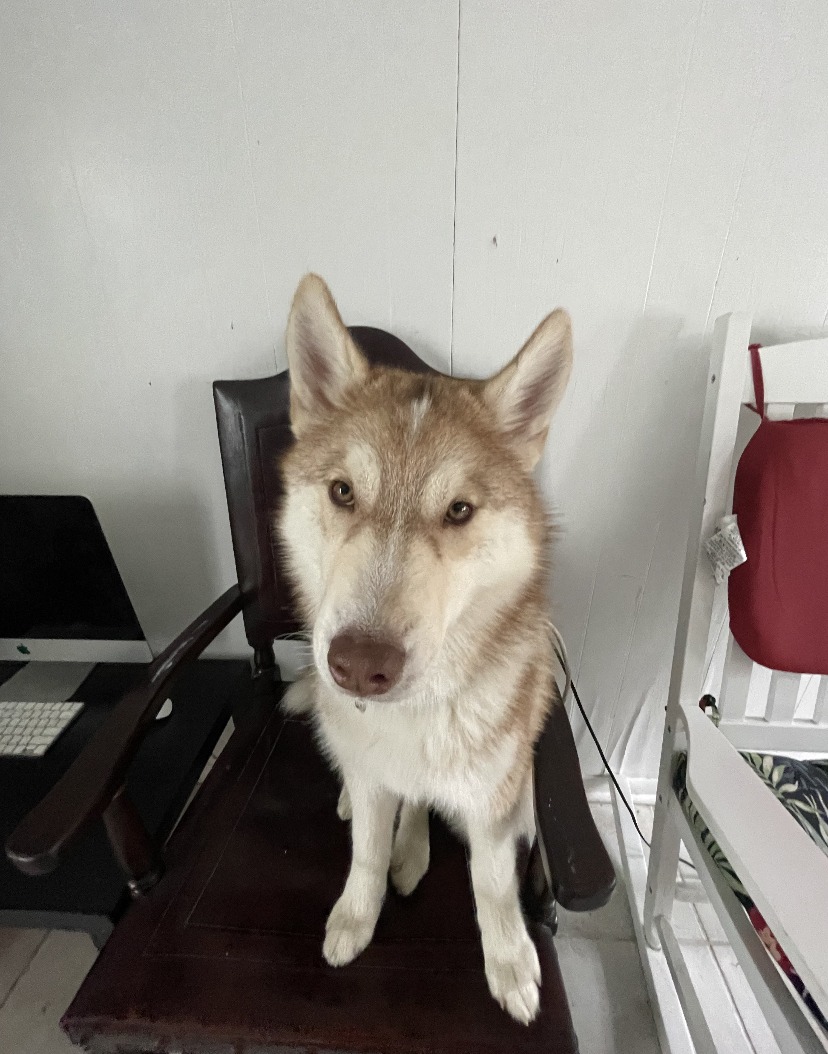He is very friendly and playful with other people and has a habit of jumping towards them