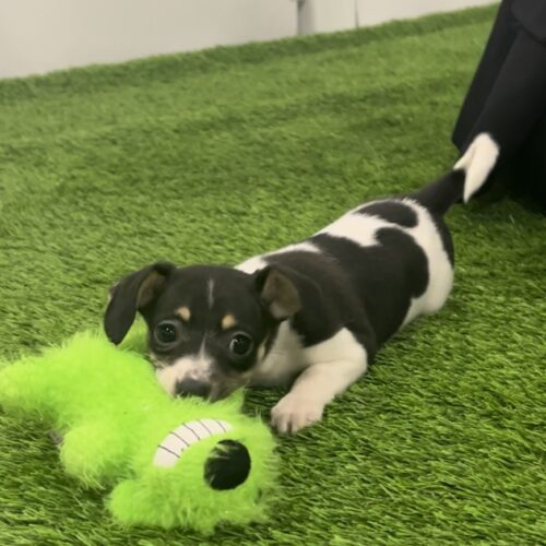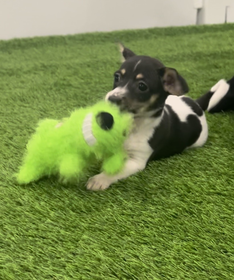 Mahi-Mahi joined rescue on the day that she was born. Her Momma Sharkey did a great job raising her litter of 4 and little Mahi is the most outgoing and playful of her siblings! She is quick to grab a toy, loves to do zoomies and approaches new people with confidence. We are estimating her adult size to be between 8-10 lbs. She will need a home with the time and patience to train an active puppy.
