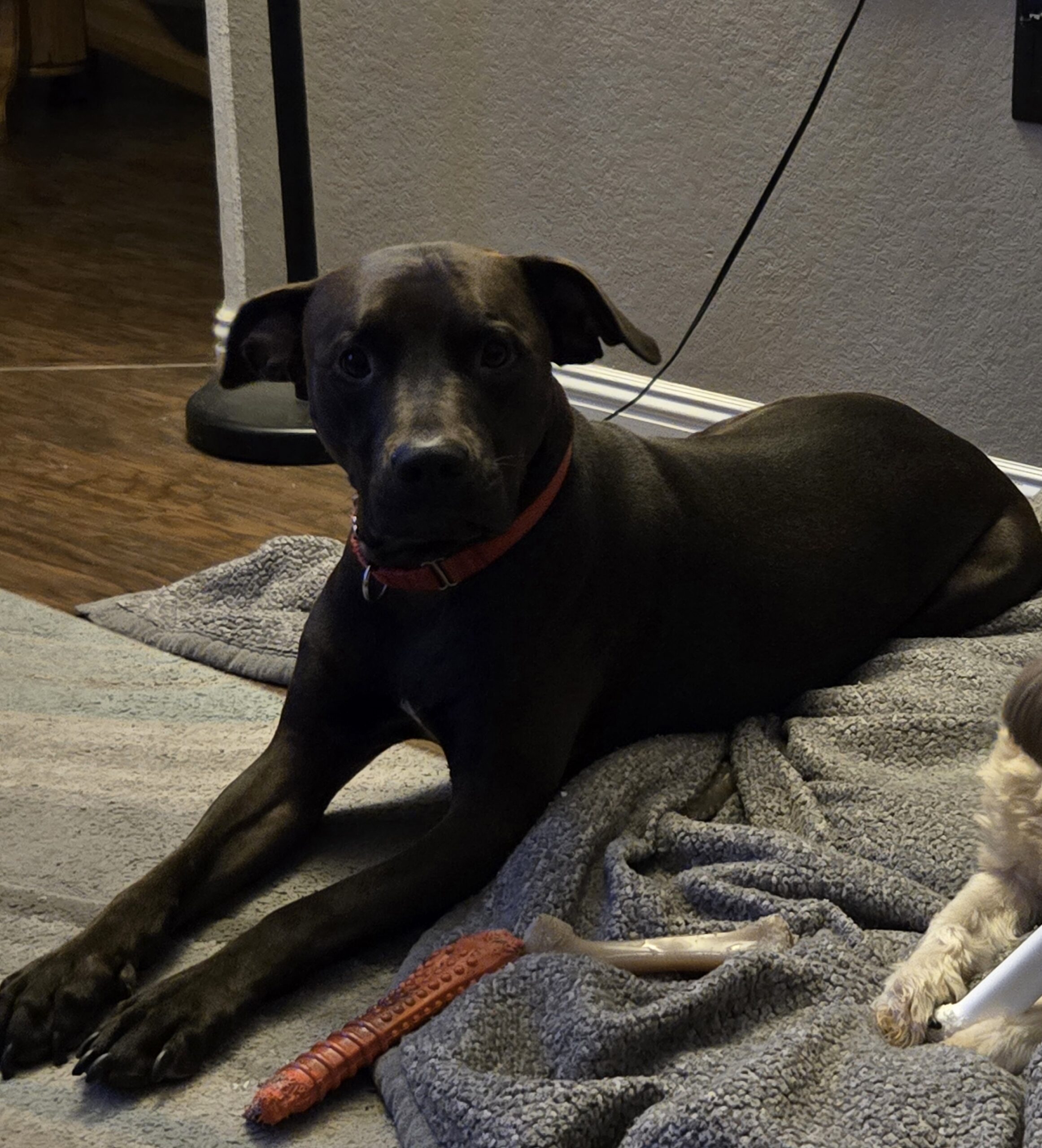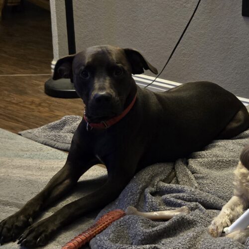 Marcus is loving and affectionate. He loves to get love from his humans. He is gentle with all my kids, ages 3, 8, and 12. He is house trained. We have busy schedules so we haven't had time to socialize him. He hasn't been around many other people or animals.