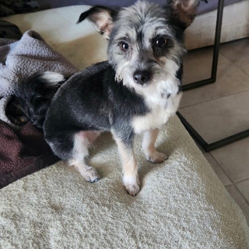 Miley came to us from a home with too many animals, as a result, she is shy from not being exposed to all of the normal things in life. Her foster mom has been working on getting her out and Miley now loves her daily walks! She does well with other dogs and ignores cats. Miley is shy with people but not aggressive. Her ideal home will have another friendly dog for her to take cues from so she can continue to gain her confidence. Miley is approximately 15 months old and weighs 8 lbs.