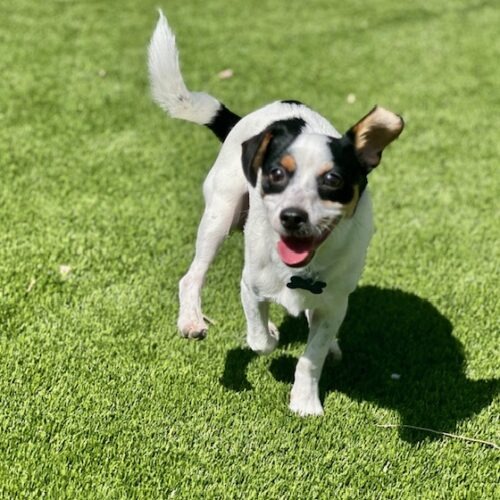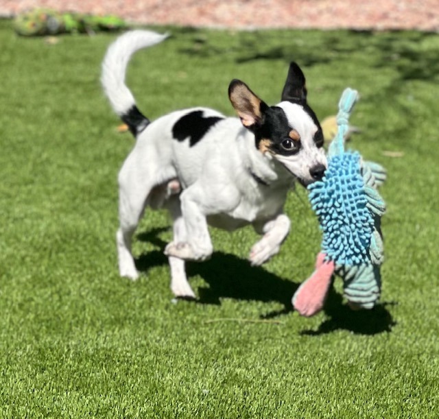 Milo recently lost his home due to a change in living circumstances for his family. He is a playful boy who does the best zoomies, loves toys and is eager for attention. Milo is fine with other small dogs but is unsure of the bigger ones. He is kennel trained and has done well being house trained. Milo was born in November and weighs approximately 12 lbs.