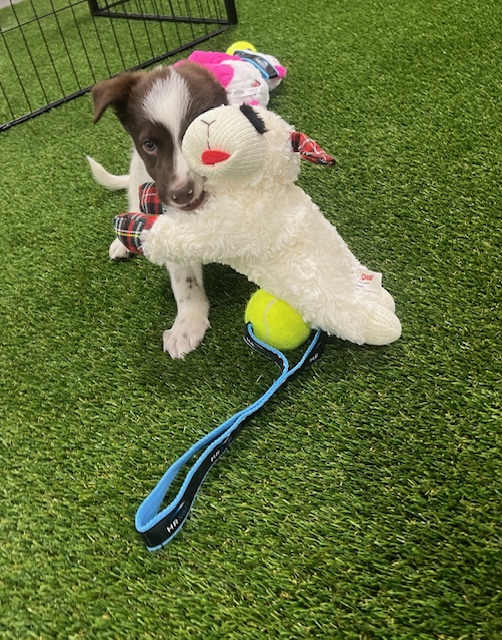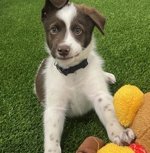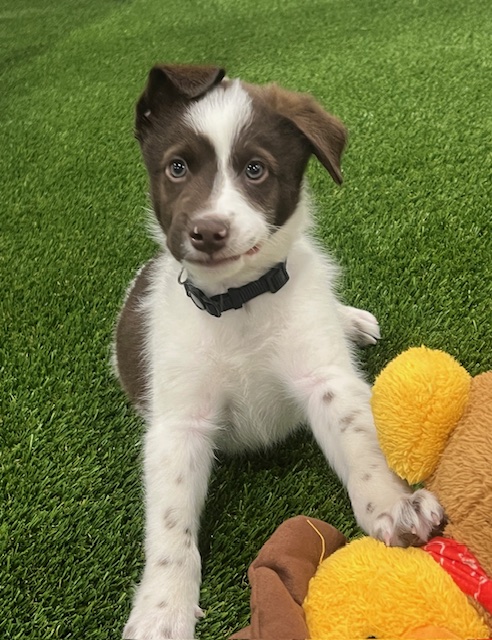 Nalin came to us as part of a litter of 7 orphaned puppies when they were only 3 weeks old. He has been raised in a loving foster home and is a social, sweet boy who loves everyone. We are not sure which breeds make up this litter, they are likely a mix of mixes, unique and adorable! Nalin will thrive in a home with the time and patience to train him to become a well mannered family member. We are estimating his birthdate as September 5th and his adult size to be in the 40-50 lb range.