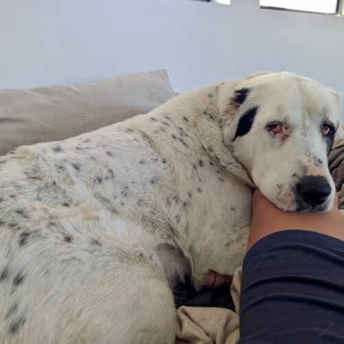We are looking to find a forever home for sweet Norma, an Alabai. Her story is rather sad, she was found as a stray being abused by teenagers (specifically being tied to and dragged behind an ATV).