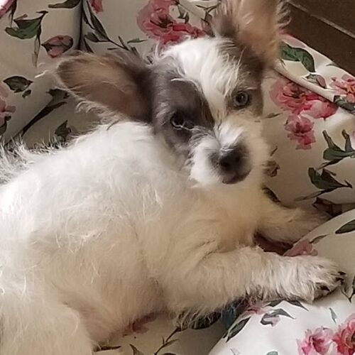Nuvia was born in January and joined us, along with several members of her family, after her human family became overwhelmed with too many dogs. She is a sweet girl, she loves other dogs, ignores cats, and adores people of all ages. She is learning the doggy door in her foster home and is eager to join her forever family where she can live a spoiled life of lots of love, toys and treats! Nuvia is expected to stay under 10 lbs when fully grown.