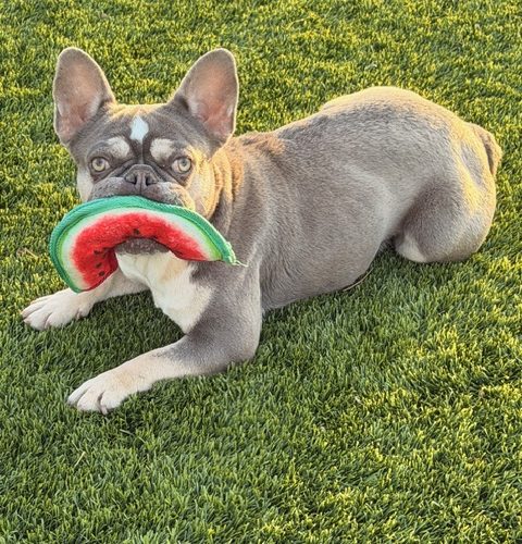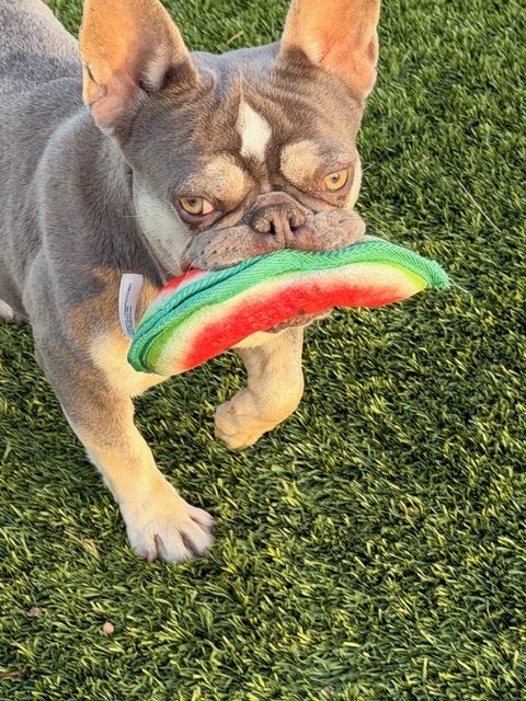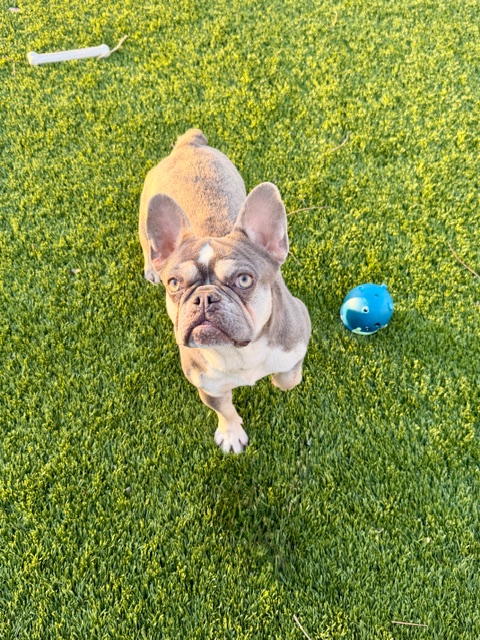 Olive is a sweet and playful girl who can be a little shy at first, but bring out some toys and she quickly shows her fun side! She’s spent much of her life in a crate, so she’s still discovering what it’s like to live in a real home. Olive is working on her potty training and building her confidence, so she’ll do best with a patient family ready to show her how wonderful the spoiled dog life can be. She is 18 months old and weighs 17 pounds.