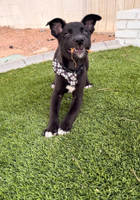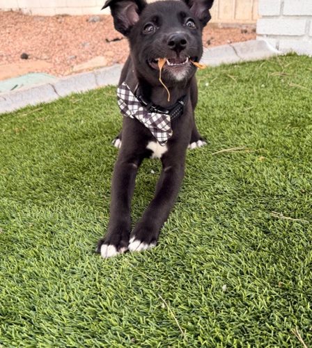 Orion is a fun pup who loves everyone that he meets! This handsome boy loves to play, both with other dogs and with his people. He is curious, smart and eager to learn. We were told he's a Dutch Shepherd mix, it must be with someone smaller because he is a small 7 lb pup at 8 weeks old. He will need a home with the time and patience to train him on his good boy manners. We are expecting him to be in the 40-50 lb range when fully grown.