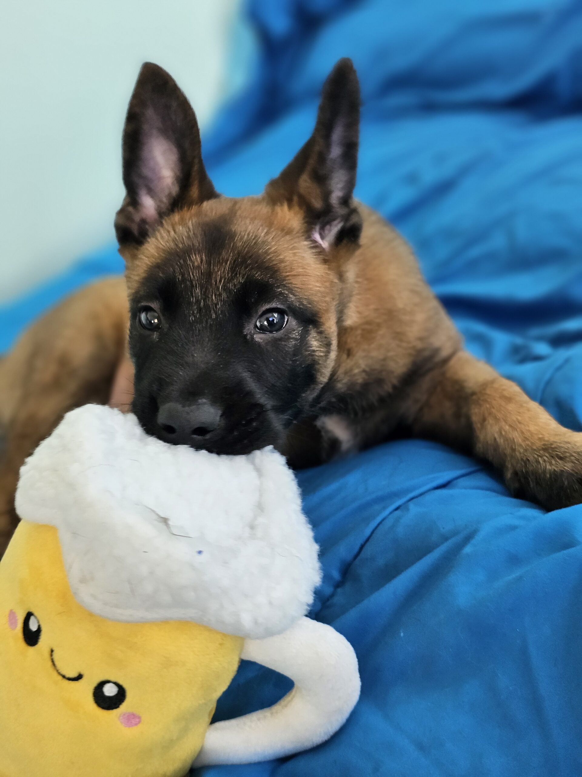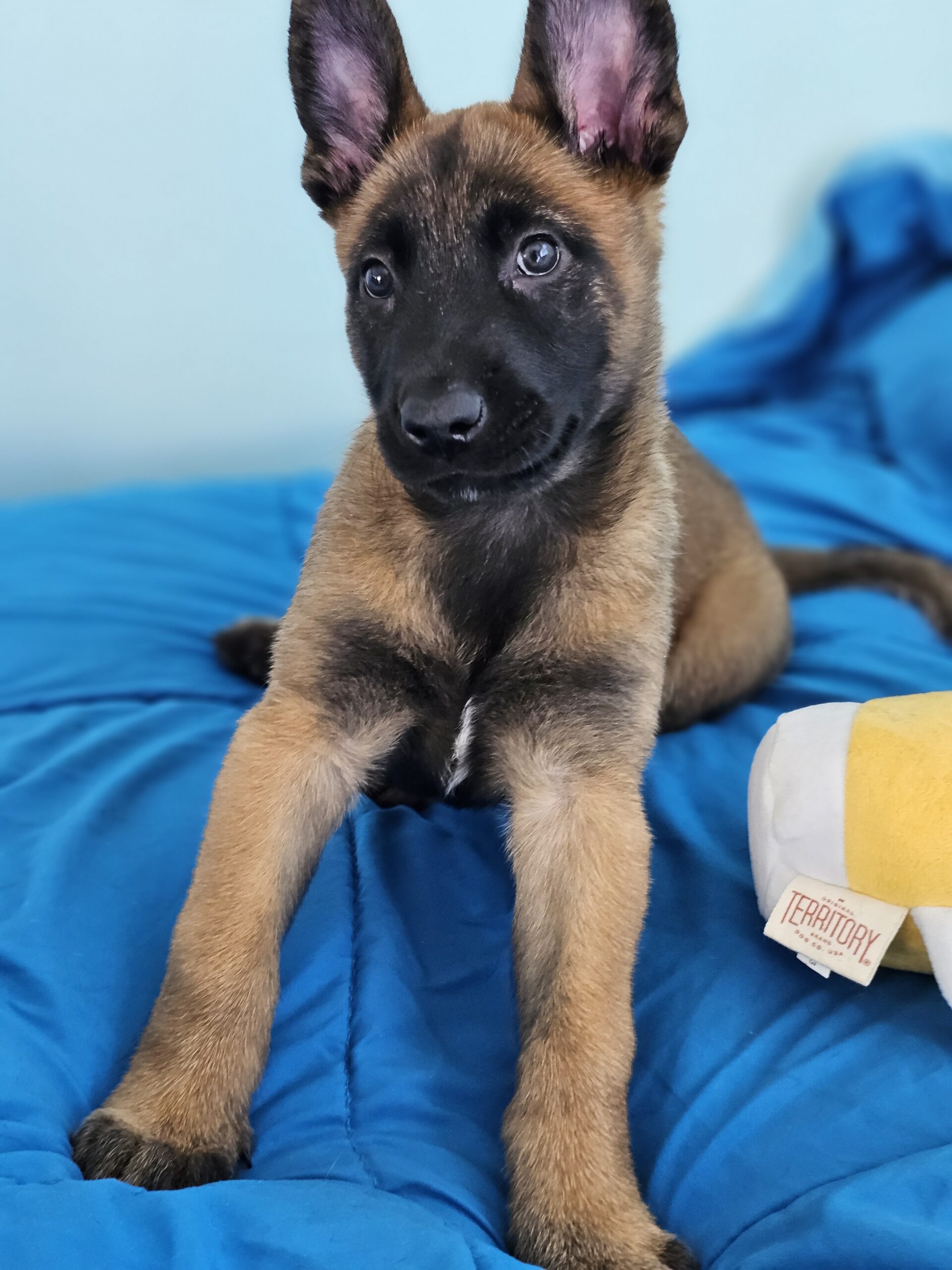 Pam joined us as an orphan, along with 2 of her siblings. They have been bottle fed and raised in a loving foster home and these puppies are sweet, smart and ready to find homes committed to training and raising a high energy dog. The pups already know to sit and wait for their food to be put down! We are estimating adult size to be around 50 lbs.