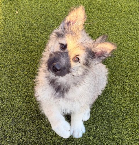 Pepper came to us as an orphan at less than one week old. He has been hand-raised in loving foster homes and has been well socialized with kids, cats, other dogs and lots of people! This handsome boy is more on the independent side, he will play with his toys on his own and he's happy to snooze on the cool tile floor - you might even catch him sleeping on his back, legs out! Pepper is looking for a home with the time and patience to train him on how to be a well mannered family member. He was born around January 10th and is estimated to be at least 70 lbs.