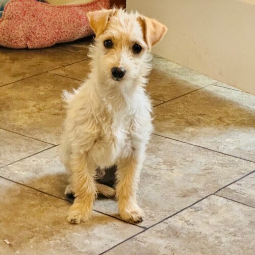 Peroni joined us, one of 9 from a home that had them all living outside. He is a shy boy due to not being exposed to much in his young life, fortunately he shows no aggression. Peroni has been enjoying life in his foster home, learning about soft beds, yummy treats and lots of toys! He is looking for a home with another dog as he will follow their lead on how he is supposed to respond to situations. Peroni was born in September and weighs approximately 8 lbs. We were told he is a Poodle/Chihuahua, his hair looks like a cute, scruffy terrier mix. This sweet boy deserves a loving home where he will continue to learn and thrive.