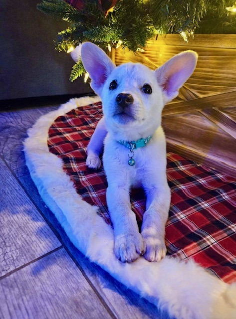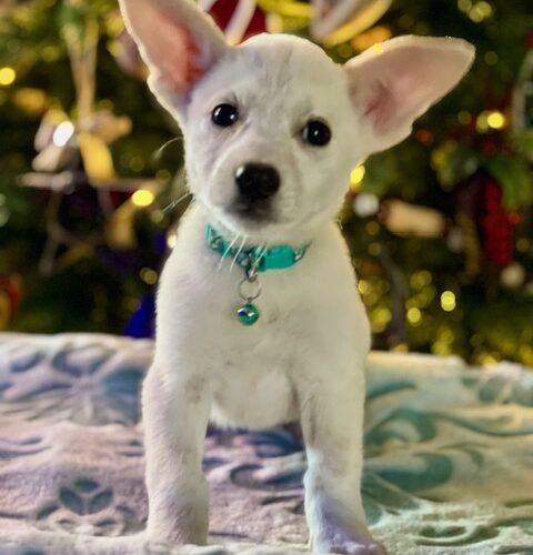 Plunge joined us as a 3-4 week old pup whose mom had been hit by a car and passed away. She and her siblings have been raised in a foster home, receiving lots of love and quality food. These pups are sweet, playful and eager to find families with the time and patience to train them to become well-mannered members of the family. We aren't sure just what they are mixed with, guesses range from Jack Russell to Jindo, American Eskimo, Cattle Dog and Chihuahua so definitely little mystery beauties. We are estimating their adult size to be around 30 lbs.