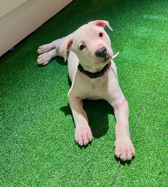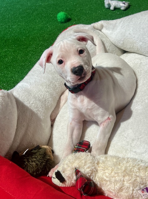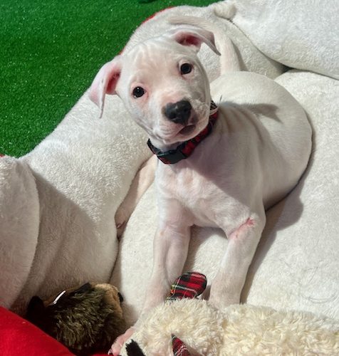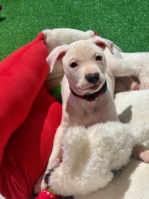 Pretzel is a playful, bruiser of a boy! This happy pup came to us at 2 weeks old, along with his mom and siblings, from our local shelter. He has been raised in a loving foster home and is well socialized. Pretzel loves to roughhouse with his brother, chew on stuffed toys and nap hard once he's done! He is already 13 lbs and 9 weeks old so while his momma (Cookie) is only 42 lbs, we think his mystery daddy was bigger. Pretzel is looking for a loving home where he can snooze on comfy beds, tear up lots of toys and learn his good boy manners.