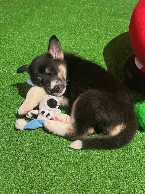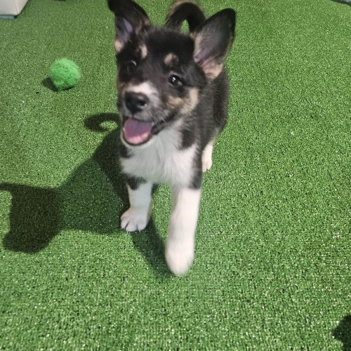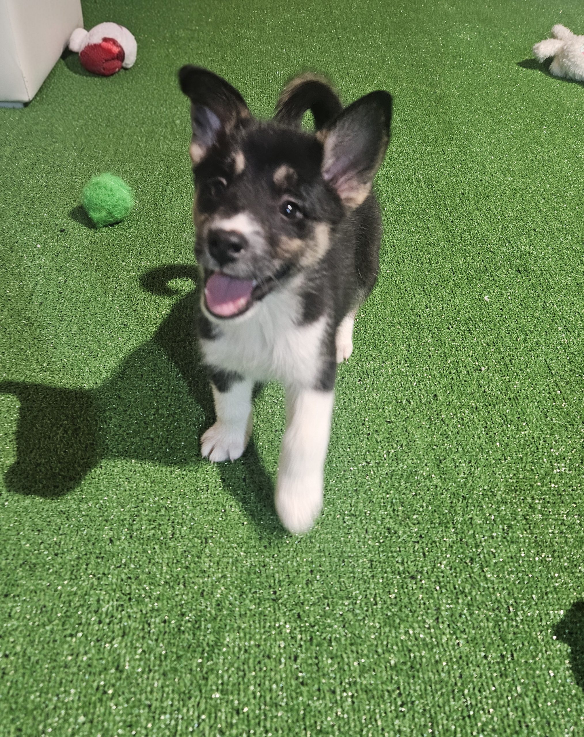 Barbary is the smallest in her litter but it doesn't stop her from joining in the fun! This sweet girl plays hard but then she needs a good nap, preferably on a lap! She joined us from our local shelter at only 1 week old, dropped off with her siblings but no mom. She has been hand raised in a loving foster home and will likely always think she's a lap dog, even when she reaches her full weight of approximately 45-50 lbs! Barbary will thrive in a home with the time and patience for an active breed puppy.