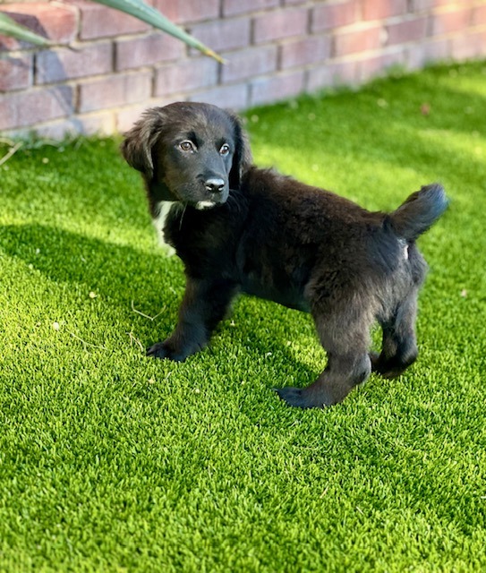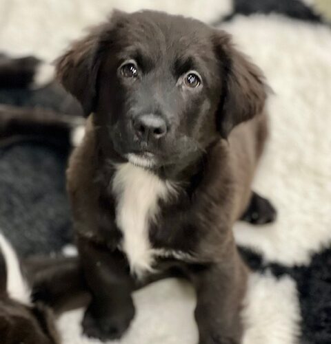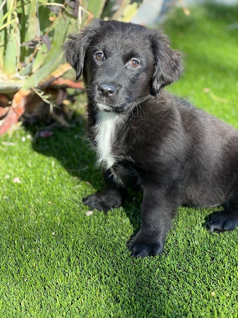 Raven is a short, fluffy girl and breakfast, lunch and dinner are her favorite times of day. She loves to run as fast as her little legs will go, chew on toys (and fingers!) and is happy to settle down for cuddles once she has burned her puppy energy. Mom was a Lab/Husky and we aren't sure about Dad; we expect her to be between 50 and 60 pounds when fully grown.