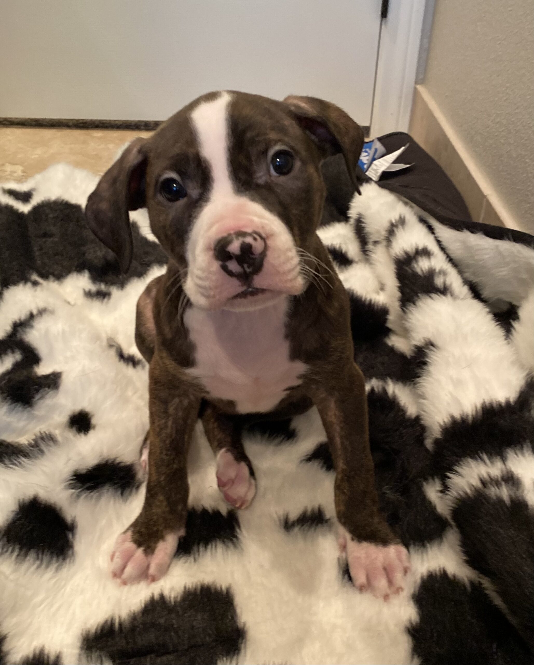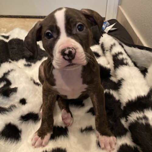 Raya is a very outgoing little lady. She loves to be the center of attention and is always the first to the door for pets! She was born with a small kink in her tail adding to her already unique personality. She was born in the beginning of April and is estimated to be about 40-50lbs when full grown.