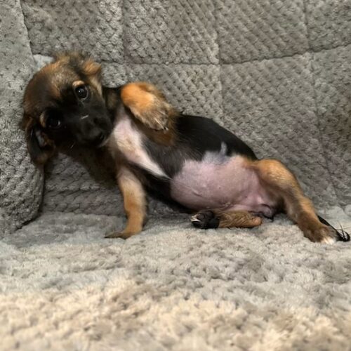 Reba is a sweet, submissive girl who loves to roll over to show her tunny for belly rubs! This cute Morkie is the sensitive one out of her sibling group. She loves everyone but is probably best suited to a quieter environment. She is working on her housetraining still and will need a home with the time and patience to continue training. She is expected to stay under 10 lbs when fully grown.