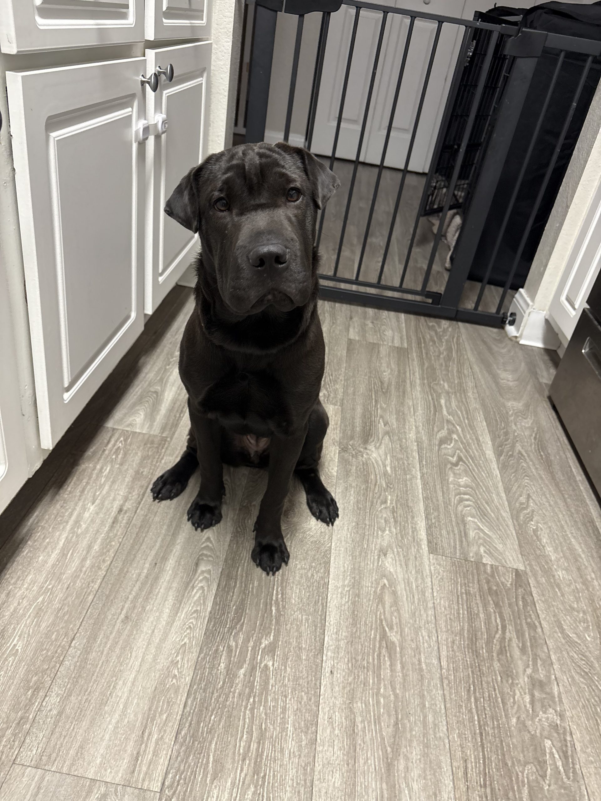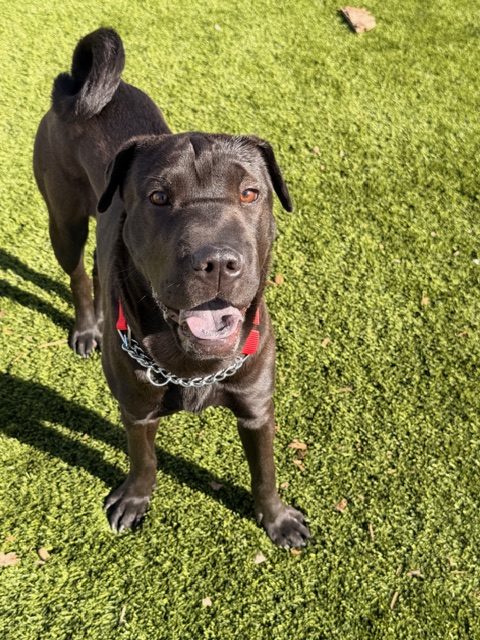 Rhea came to us to find a new home after her family's work schedule changed, causing her to spend long hours alone. She has been raised around young kids and another dog and does well with everyone! She is kennel trained, playful and has a permanently cute puppy look due to her small size. Rhea was born in May 2025 and currently weighs 24 lbs.