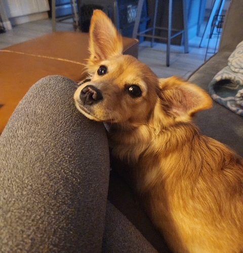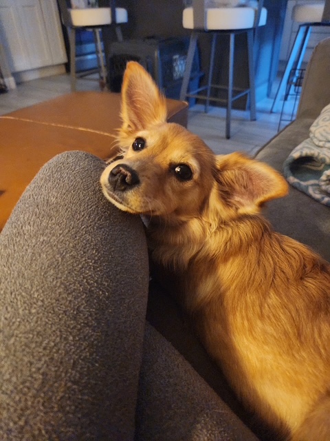 Roxy came to us from someone who was moving out of the country; she was the result of an accidental litter from their other dogs so she just lost the only family she has ever knows. Despite this, Roxy has adjusted well to her foster home. Her tail wags whenever she gets a soft word, a nice word or a treat. Roxy is only around 7 months old but she is mellow for a puppy. She does like to play, both with other dogs and kids. She is working on learning the dog door and will need a home that is happy to continue her training. Roxy was born around the end of May and currently weighs 8 lb, she is expected to stay around 12 lbs or less.