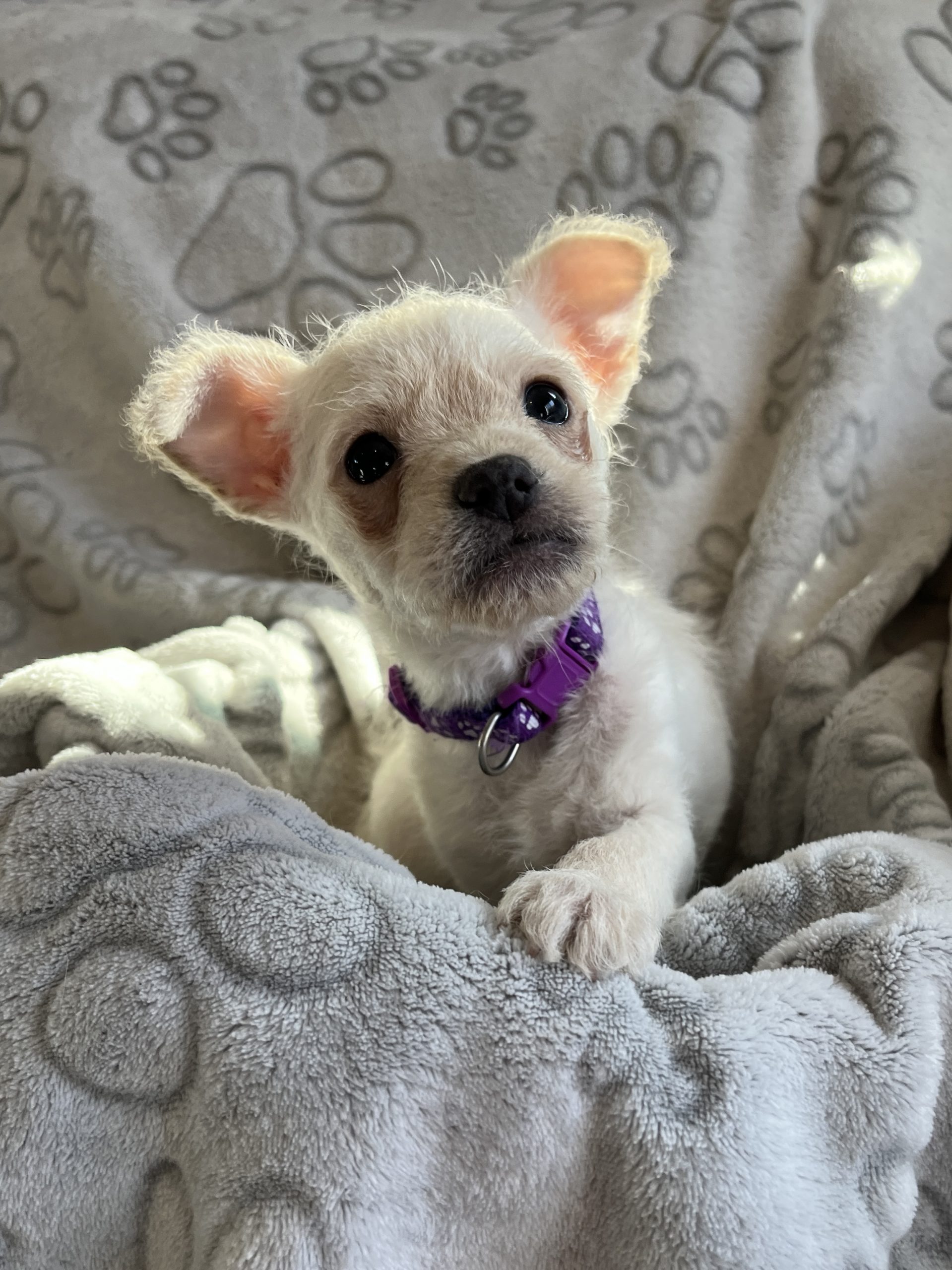 Ruth is a spunky, determined little girl who loves to explore and keep up with whatever is going on around her. Born December 2, 2025, Ruth entered rescue as a bottle baby orphan at just 4 days old and has been raised in a loving foster home from the start. She enjoys playtime, learning new things, and cuddling once she’s tired. Ruth is a Chihuahua mixed with a few unexpected breeds; we expect her to be in the 10–15 lbs range when fully grown.