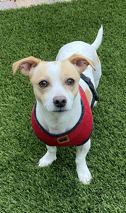 Snoopy is a sweet and gentle chihuahua/terrier mix whose favorite past time is cuddling. He is potty trained and not a barker, making him an enjoyable companion. Snoopy is good around other small dogs and cats and has been friendly to every person he's met! He is approximately 3 years old and 15 lbs.