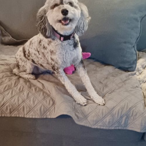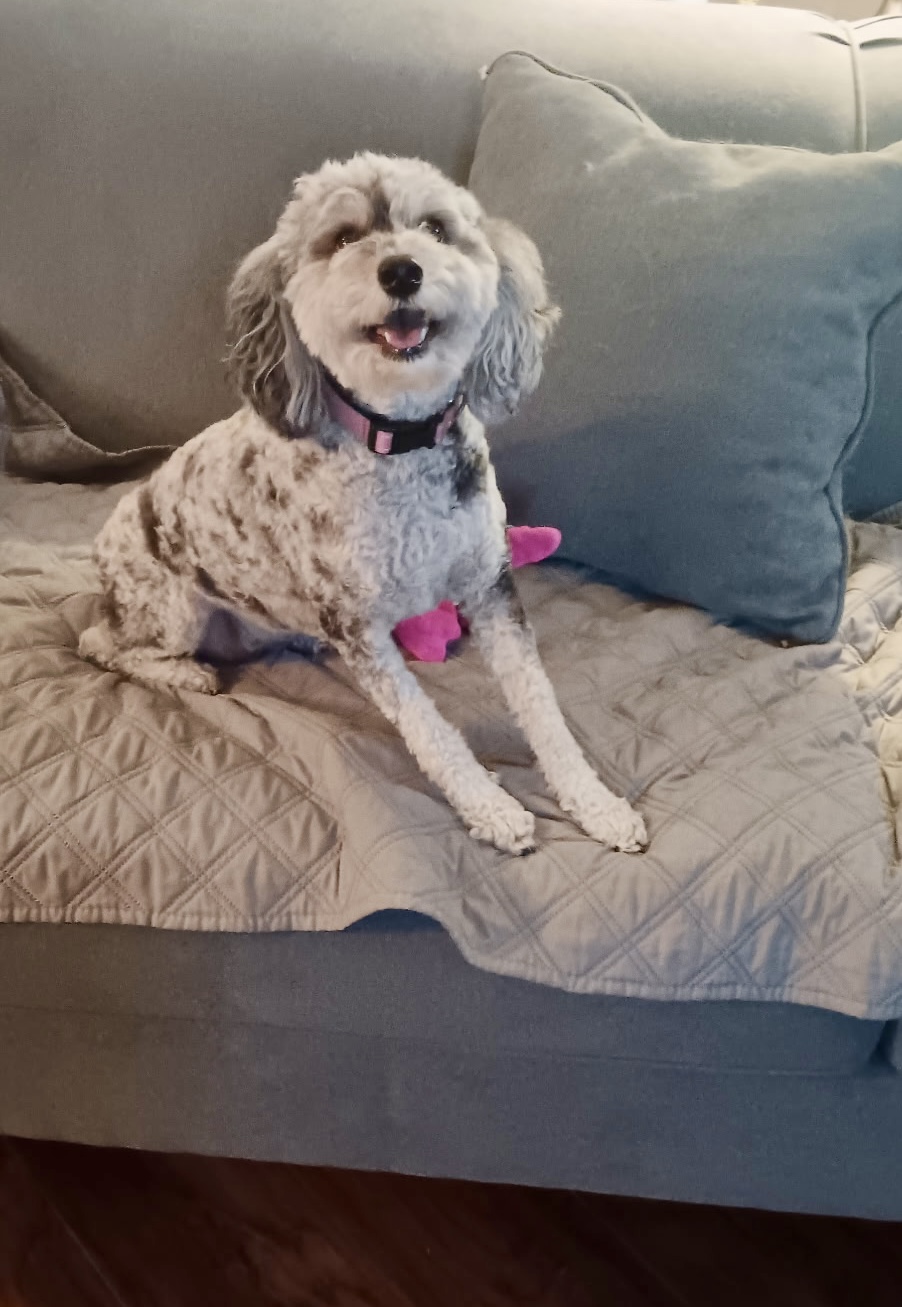 Stormy came to us from someone whose change in work schedule left no time to give Stormy the loving life she deserves. She has been a loved family member and is as happy and sweet as they come - even on a trip to the vet's office! Stormy gets along well with other dogs, she is playful without having too much energy. She is also a cuddler and content to binge watch your favorite shows on the couch - preferably while sharing snacks! Stormy is 3 years old and weighs approximately 25 lbs.