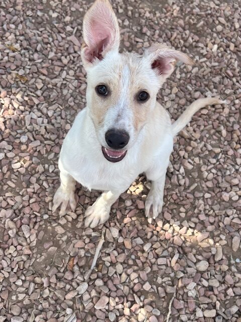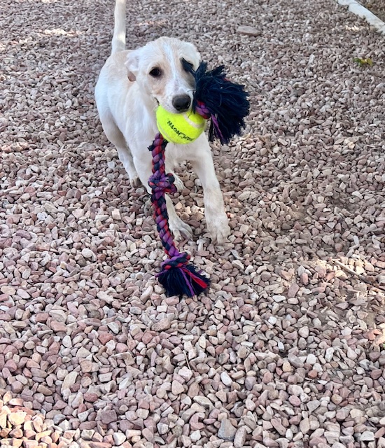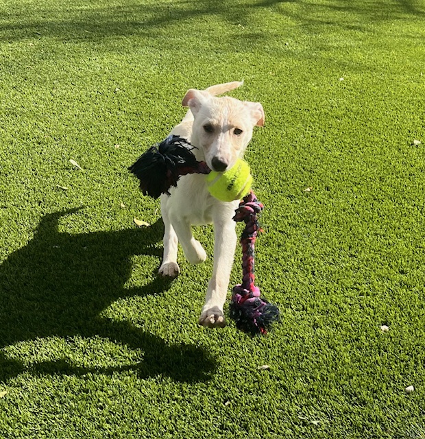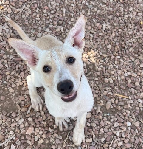 Sugar and her siblings came to us when they were 2 weeks old. They were bottle fed and raised in our loving foster homes, getting socialization and lots of love. They are a Shepherd mixed with Lab and something smaller as our best guess. Sugar loves toys, lots of play time and cuddles. She was born around May 9th and is expected to be around 50 lbs when fully grown.