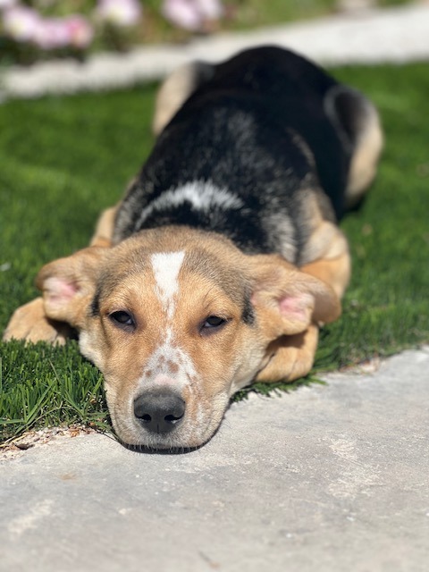 Sunshine came to us, the result of an accidental litter. Her momma is a 95 lb white german shepherd while her dad is a 50 lb shepherd so we are estimating her adult size to be around 75 lbs. She is gentle as far as puppies go, enjoys playing and is learning the dog door in her foster home. Her foster dad said she is learning how to sit and stay and her favorite snackies are tostitos and tortillas. She needs a home with the space for a large breed dog, as well as the time and patience to train her to become a well-mannered family member.