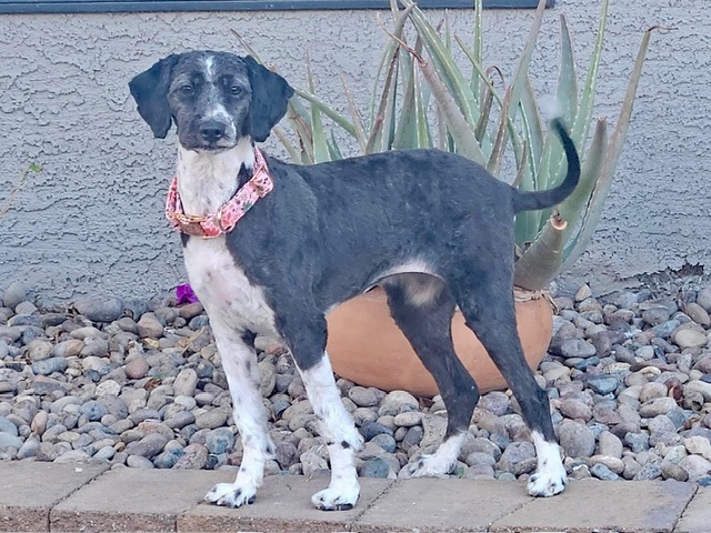 Suzy came to us from someone with a new baby and not enough time for her. She had lived in her home since birth and never left so the world is a new, scary place for her. Suzy is a sweet girl who is shy in new situations but she is curious and gaining confidence in her foster home. She is good in a kennel, learning the doggy door and gets along well with the other dogs. Suzy is turning one year old in January and she weighs 18 lbs.