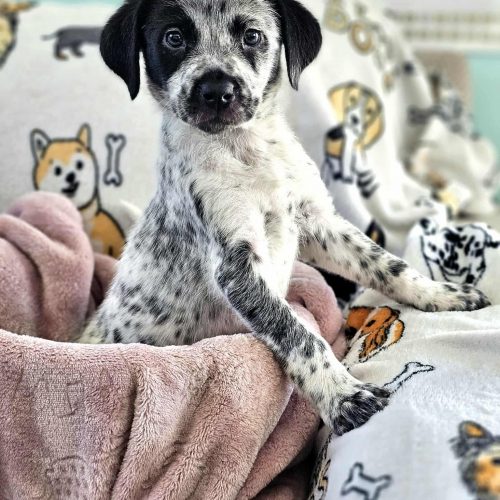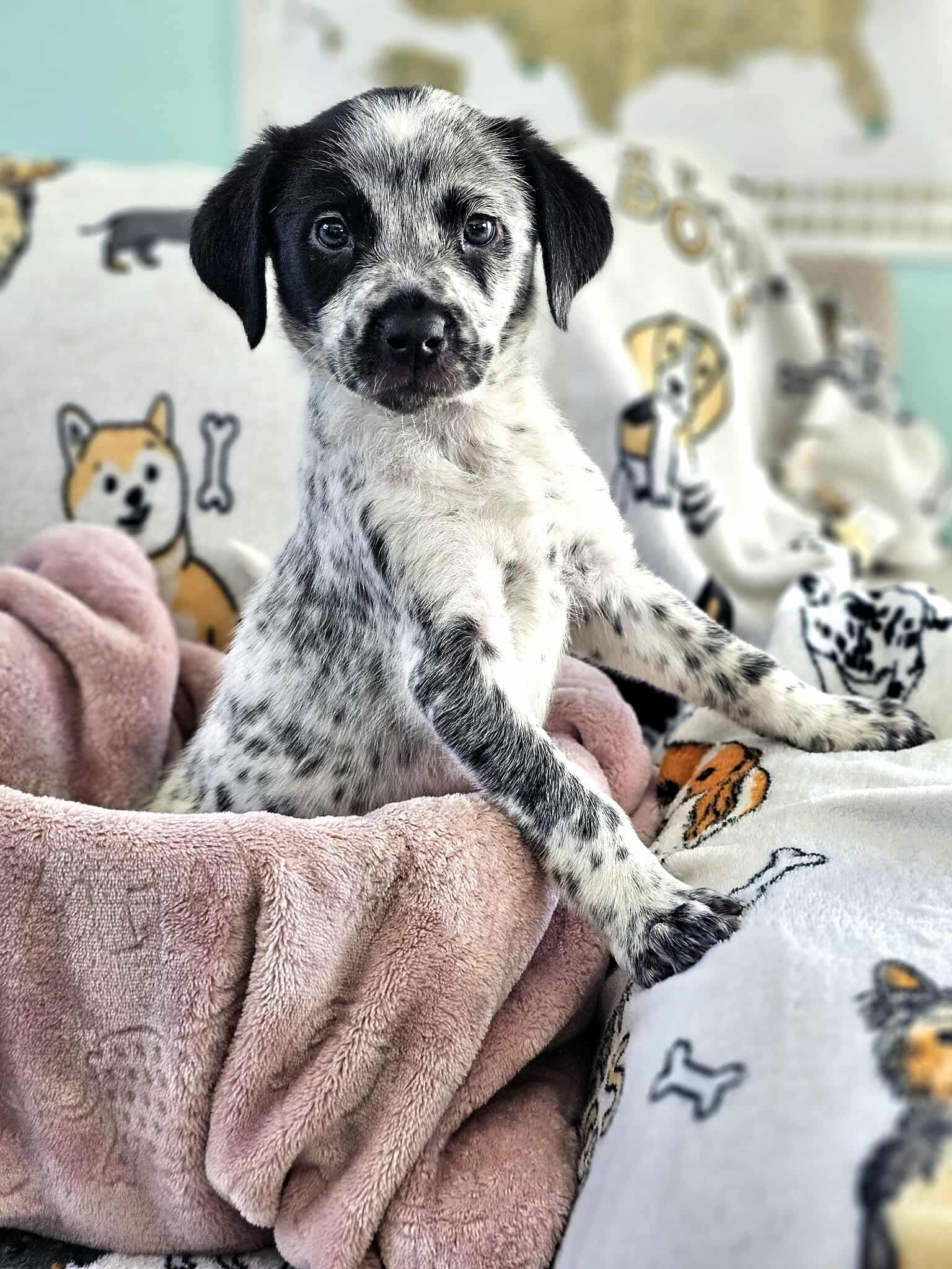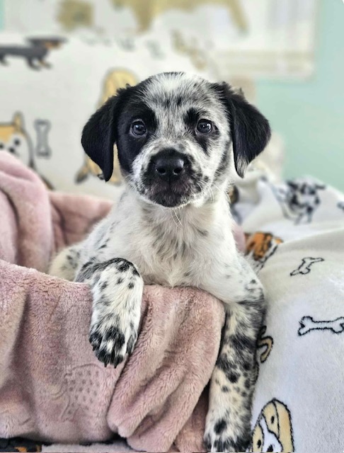 Grace joined us, along with her 8 siblings, the result of an unplanned litter. She and her littermates are sweet pups who are having fun exploring in their foster homes, learning all about life. She is primarily a mix of Lab and Border Collie and is estimated to be 50 lbs when fully grown.